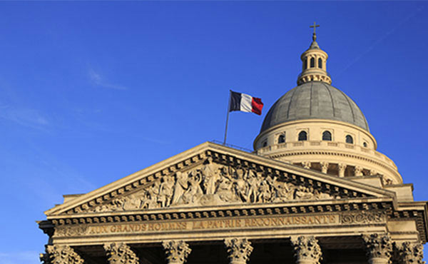 Le Panthéon, temple de la Nation Française, était à l’origine un édifice religieux glorifiant la personne de sainte Geneviève, patronne de Paris. En 1791, la Révolution transforme le monument en temple des grands Hommes. Au XIXe siècle, il reçoit, au gré des régimes successifs, une affectation tantôt religieuse, tantôt patriotique. Depuis 1885, date de l’entrée au Panthéon de Victor Hugo, l’édifice est devenu le lieu où reposent les grands Hommes de la patrie : Voltaire, Rousseau, Zola, Pierre et Marie Curie… et depuis le 1er Juillet 2018, Simone Veil.